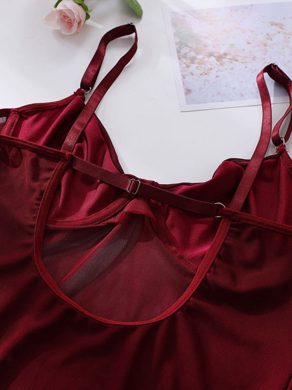 New sexy one-piece bodysuit with gloves and bandage see-through mesh sex suit